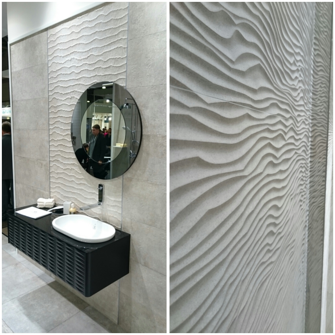 Один из любопытных трендов выставки Batimat Russia в городе Москва - крупный керамогранит с рельефной поверхностью. Эффектно смотрится в сочетании с гладкими поверхностями. Такой керамогранит укладывают без швов, это придает ощущение монолитности. Фабрика Porcelanosa стала одной из наших любимчиков)