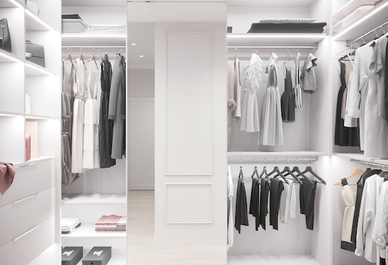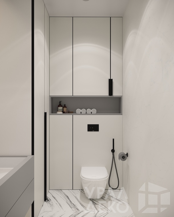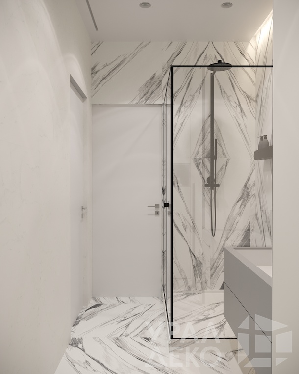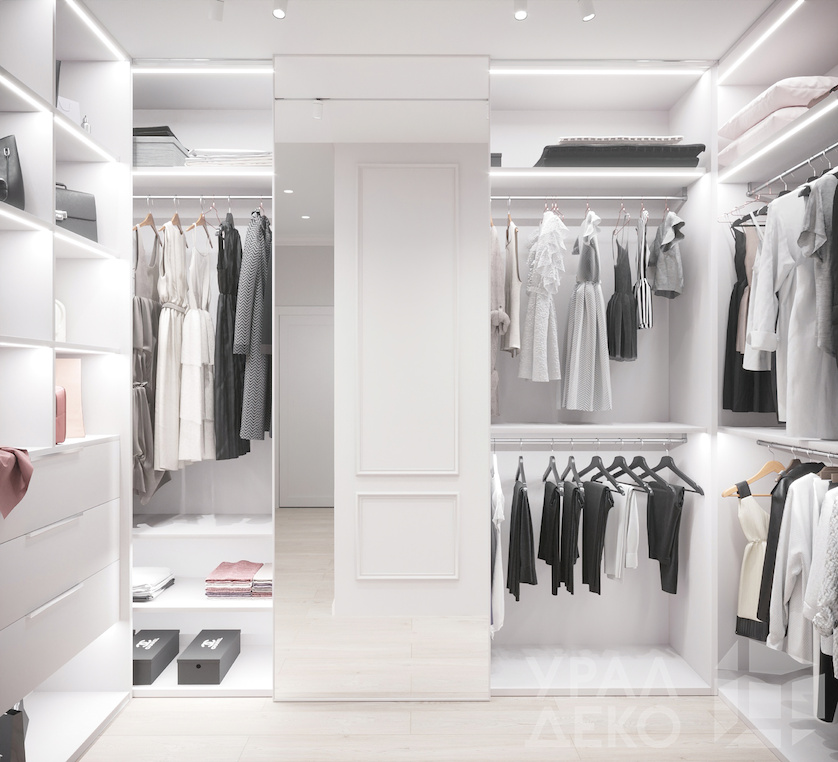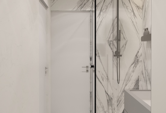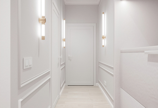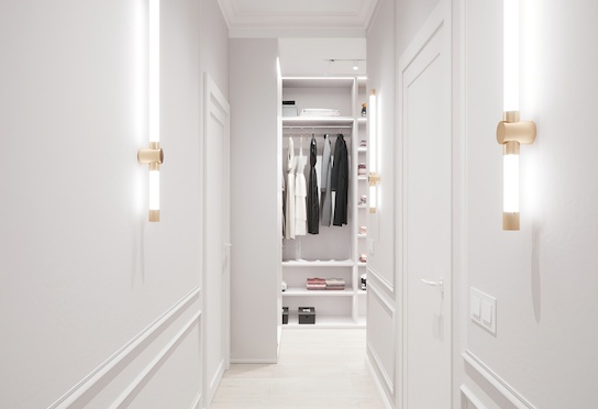 Достаточно глобальная перепланировка - убрали все стены, кроме несущих, расширили проемы, где нельзя было убирать стены. Конструктив помещения выстраивали заново. Изначально было две небольших гардеробных - одну убрали, вторую объединили с пространством в коридоре.