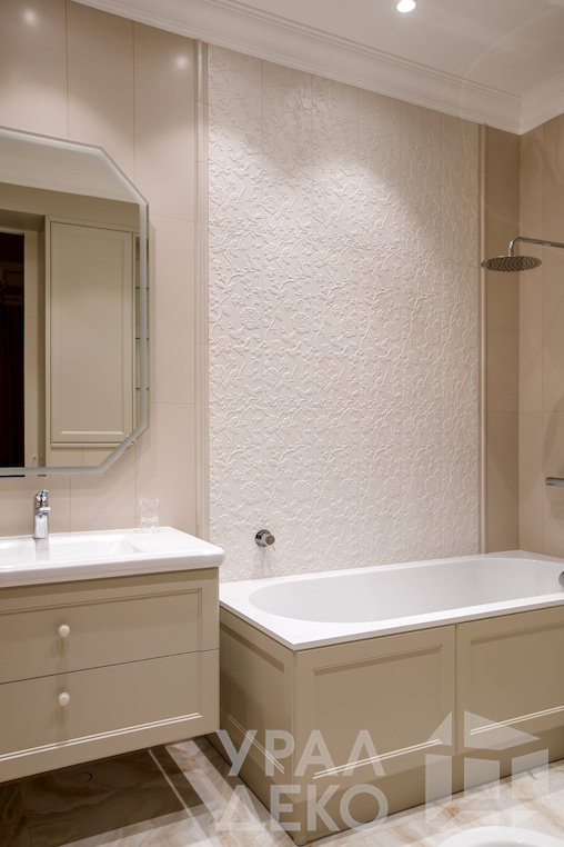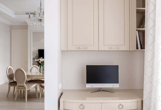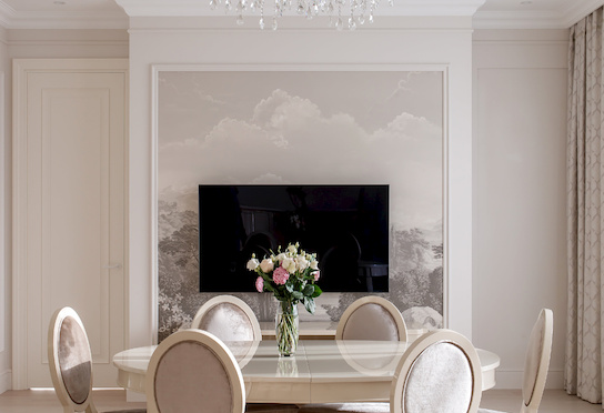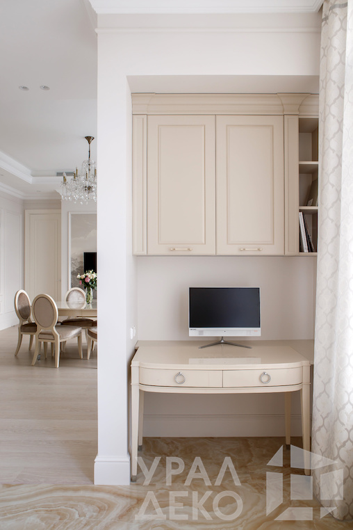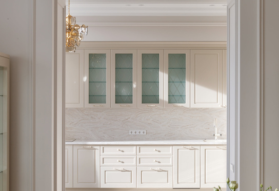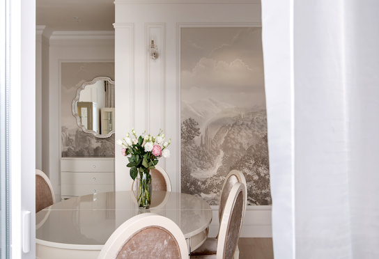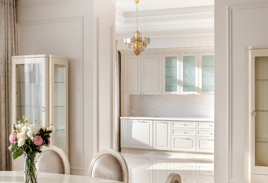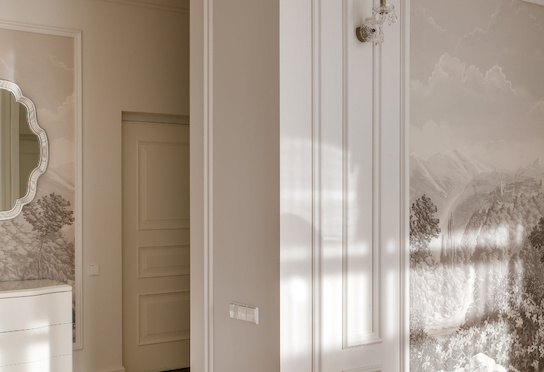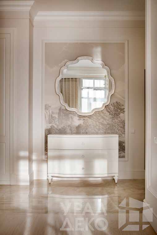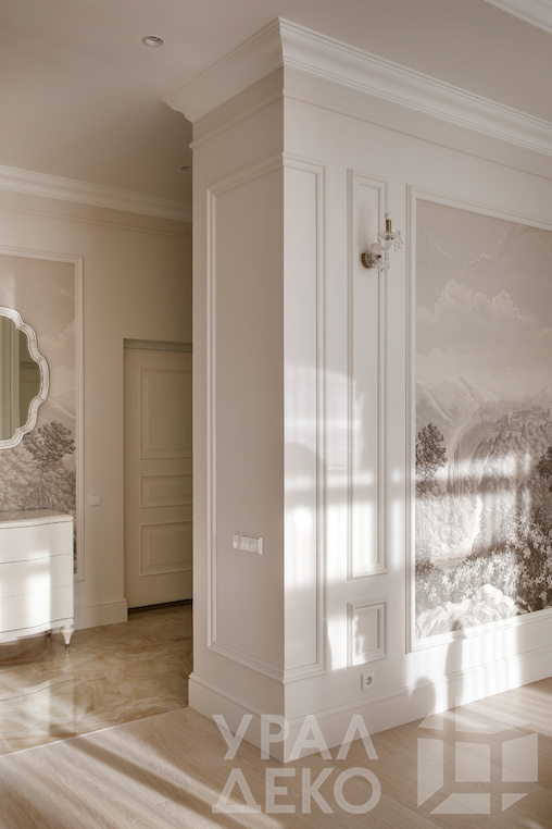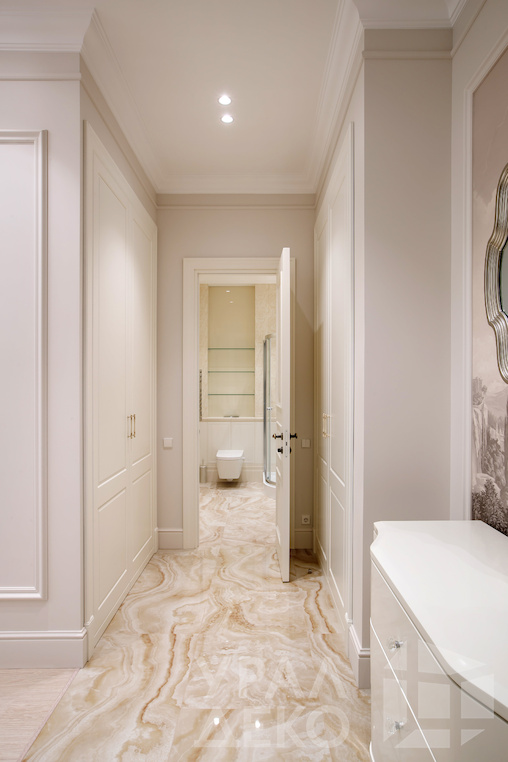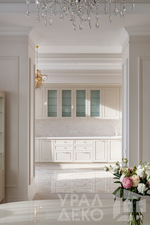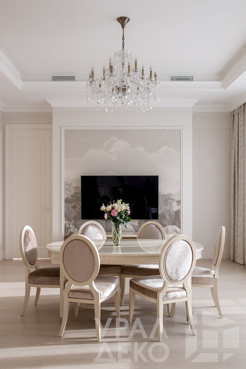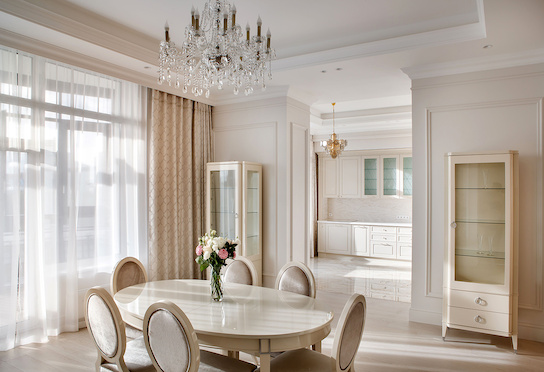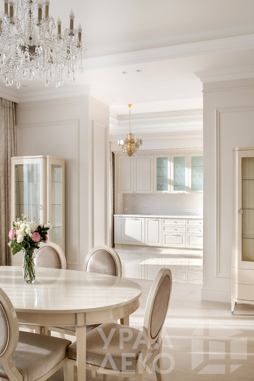 Светлый интерьер с элементами роскоши и минималистичным оформлением создают элегантную и дорогую картину помещений. Дизайн не предусматривает лишних элементов декора, концентрируя внимание на отделке стен и бытовой мебели. Дизайн в светлых цветах расширяет пространство и создает уют в любом уголке квартиры.