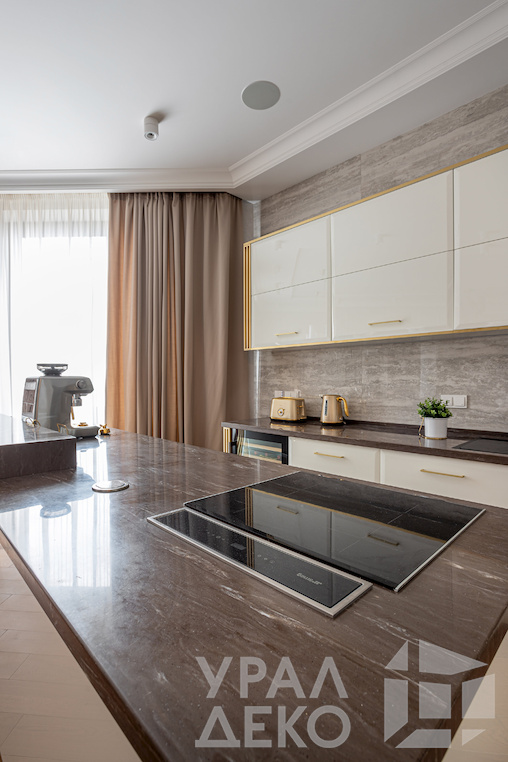 Бежево-коричневый интерьер представляет собой сочетание элегантности и уюта. Цветовая палитра включает в себя оттенки песочного, бежевого, белого, коричневого и шоколадного цветов, которые создают атмосферу спокойствия и тепла. Комнаты наполнены светом благодаря большому количеству источников. Предусмотрены интересные решения в дизайне декора и функциональных элементов.