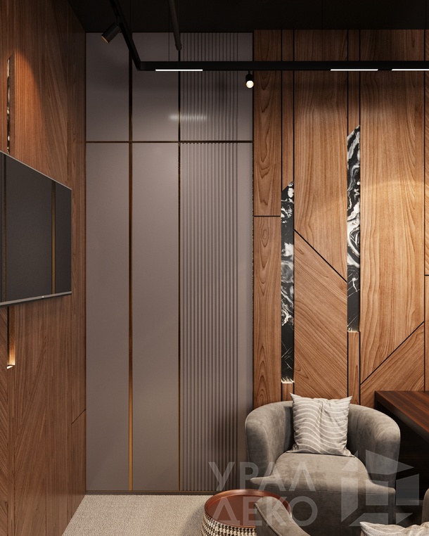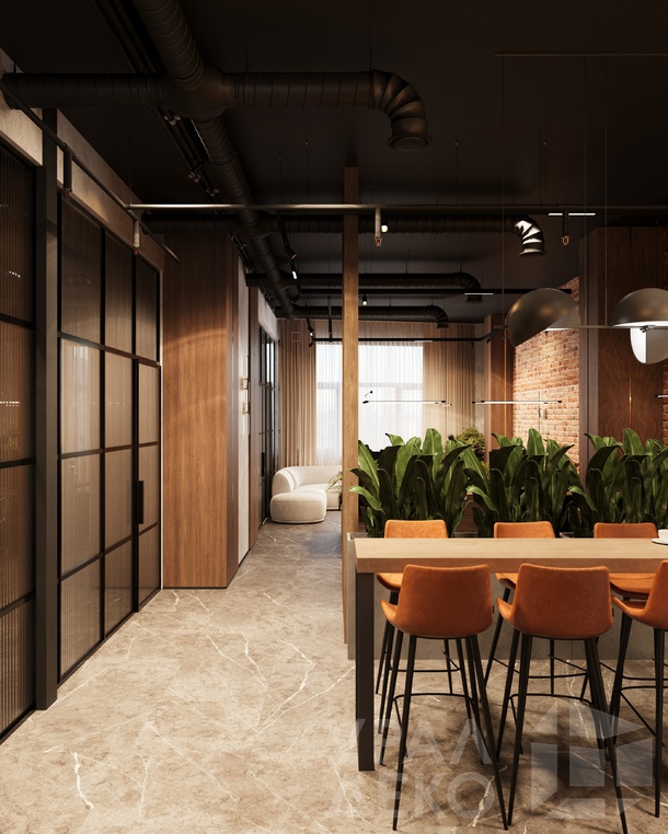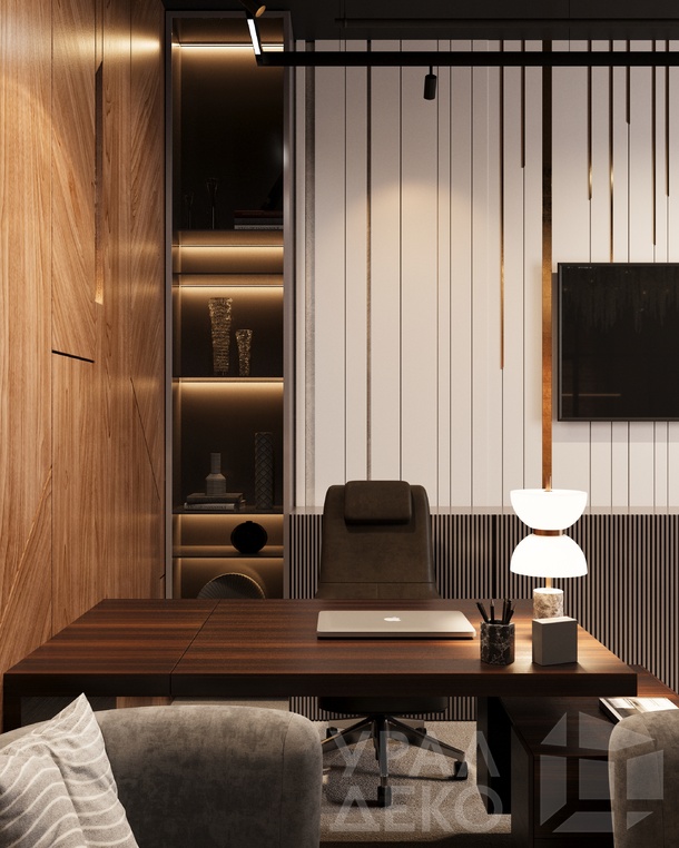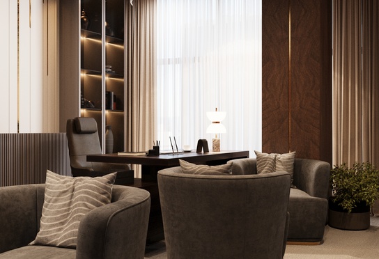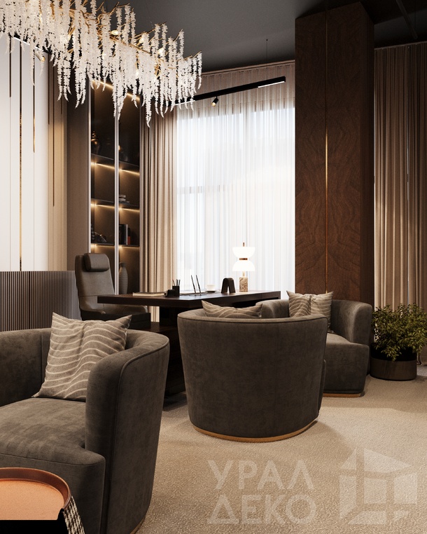 Дизайн-проект выполнен для транспортной компании «РТЛ», которая занимается железнодорожными грузоперевозками по России и странам СНГ. Пожелание Заказчика по стилю - современный в сочетании с элементами домашнего уюта.