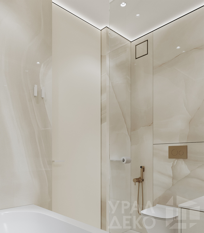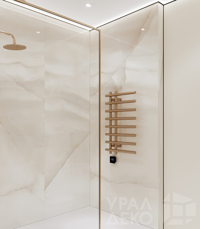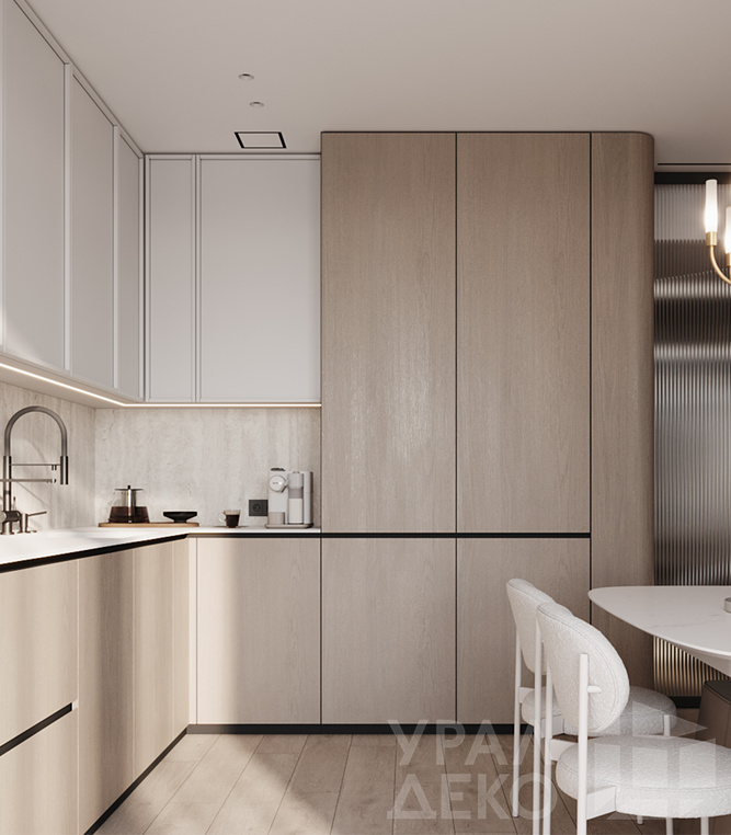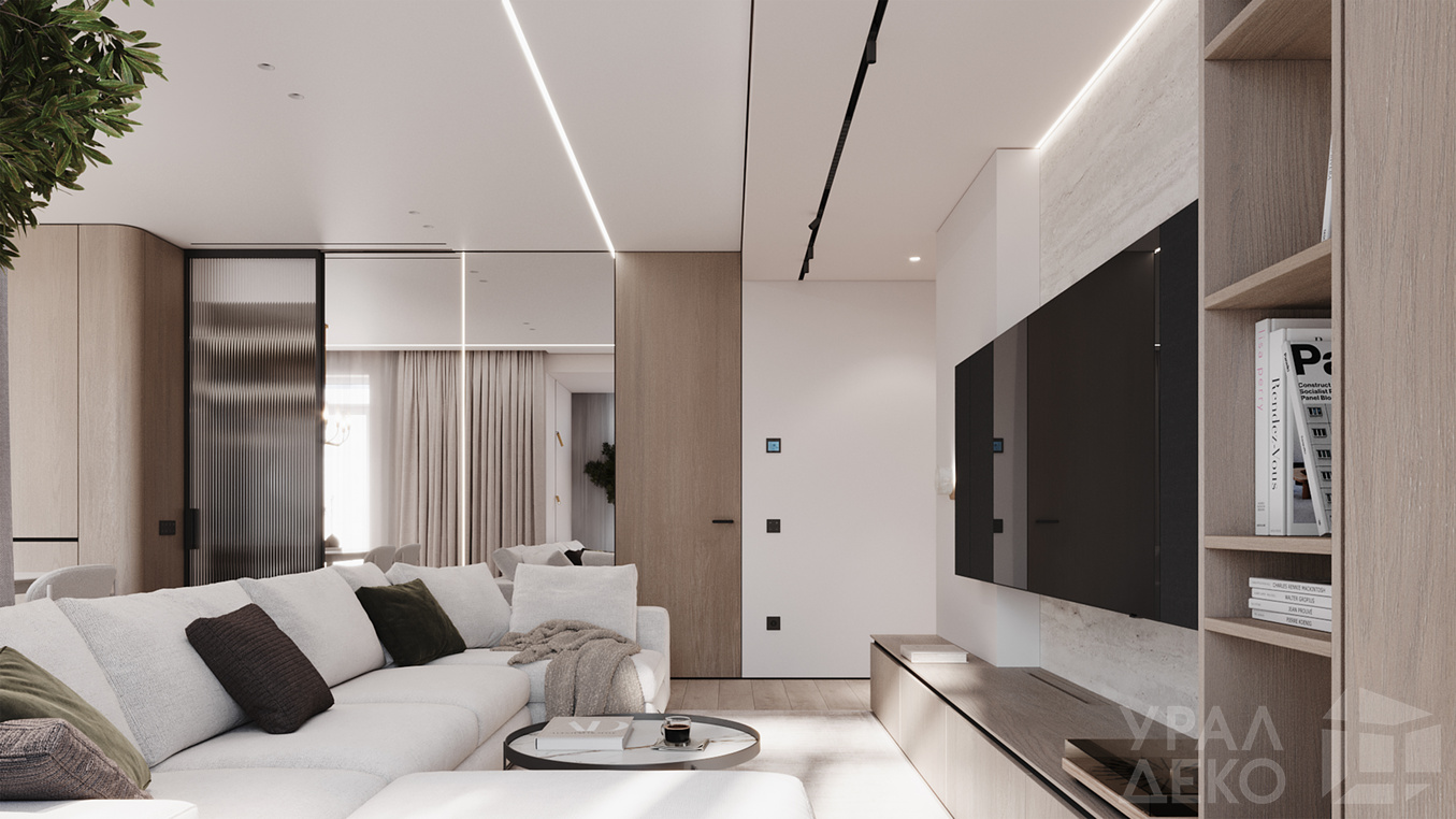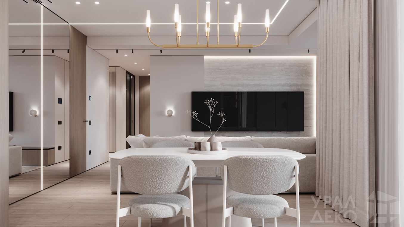 Итог — проект, в котором каждая деталь отвечает их запросу, от кварцвинилового пола до мягкого рассеянного освещения.