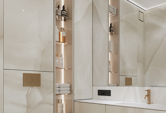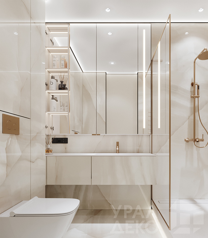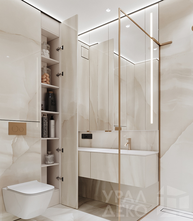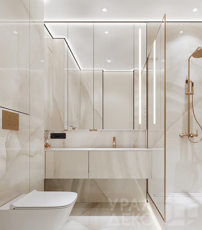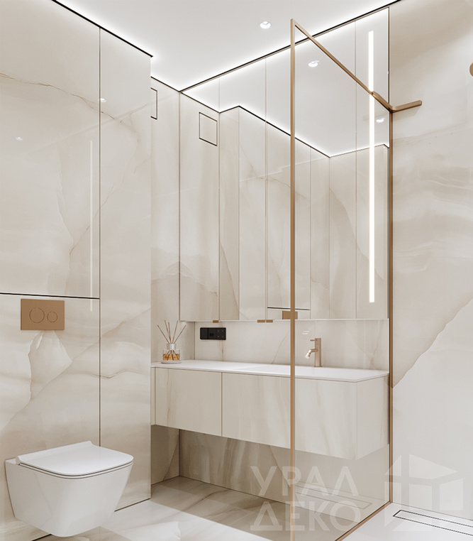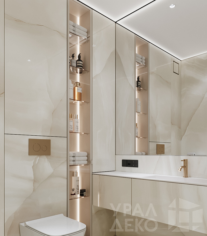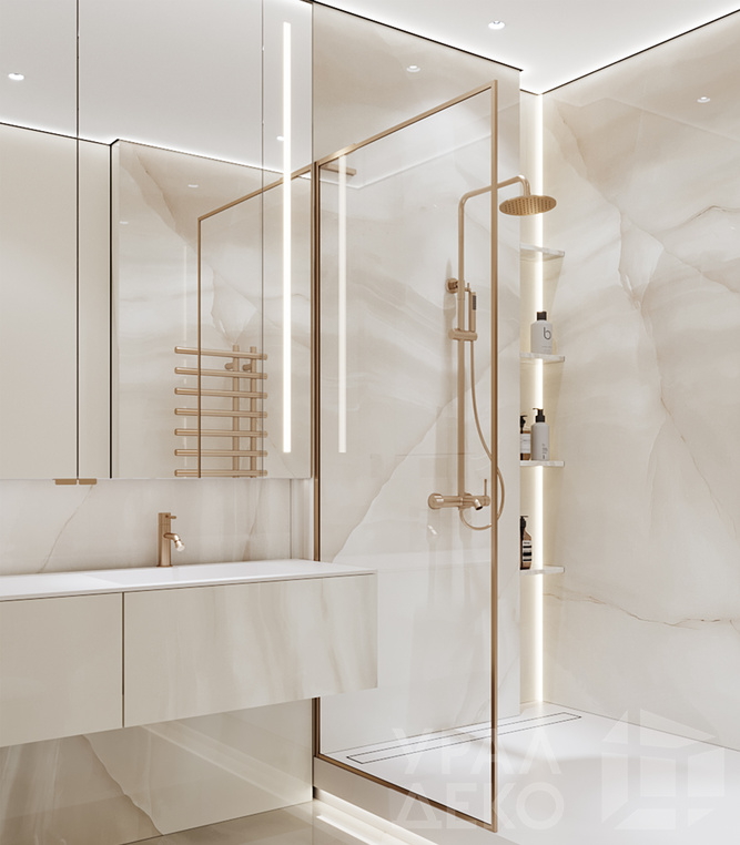 Итог — проект, в котором каждая деталь отвечает их запросу, от кварцвинилового пола до мягкого рассеянного освещения.