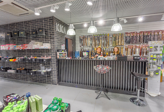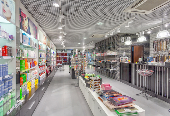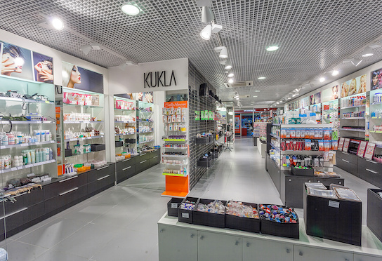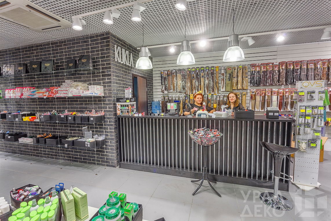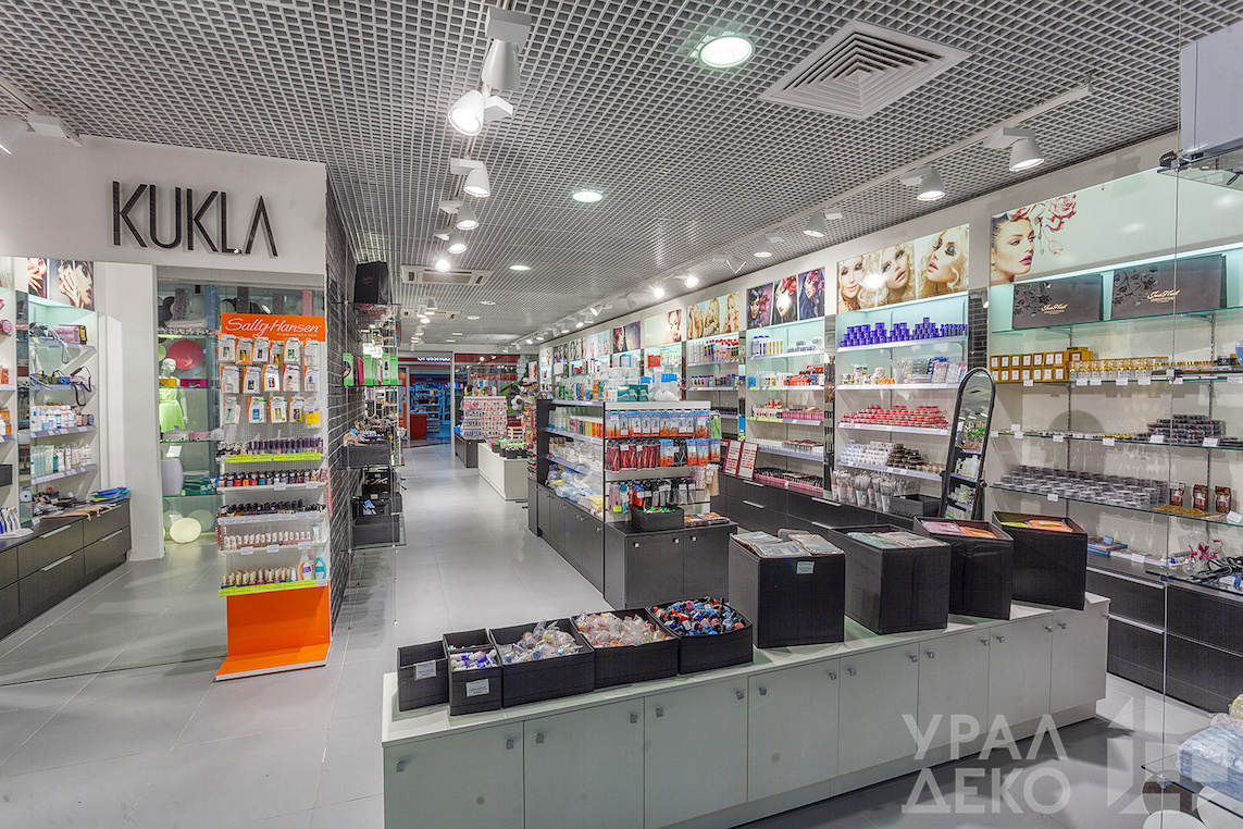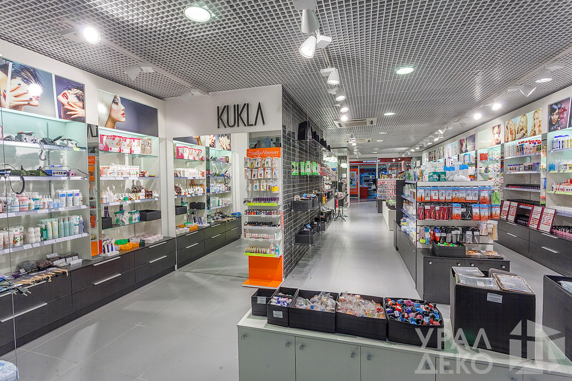 Интерьер магазина «Кукла» выполнен в фирменном стиле компании, занимающейся реализацией профессиональной продукции для наращивания и дизайна ресниц, ногтей и волос. Руководство предприятия не собиралось прекращать торговлю, поэтому было принято решение переделывать только половину помещения, а вторая часть продолжала функционировать. Затем вся продукция и оборудование переместилось на отремонтированную площадку, и отделочные работы продолжались уже на другой половине магазина. Кстати, чтобы не мешать покупателям сотрудники «УралДеко» работали только ночью. При этом на переделку были отведены максимально сжатые сроки, подразумевающие проведение ремонта в один этап. «УралДеко» с успехом справилась с данной задачей, уложившись в сроки и первоначальный бюджет заказчика.