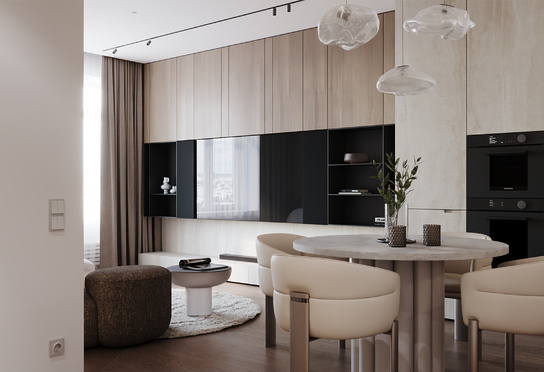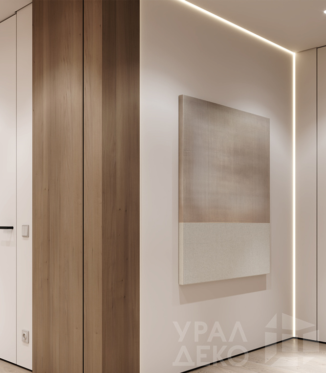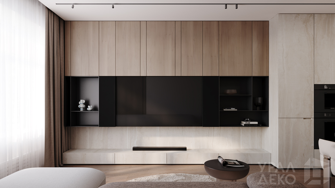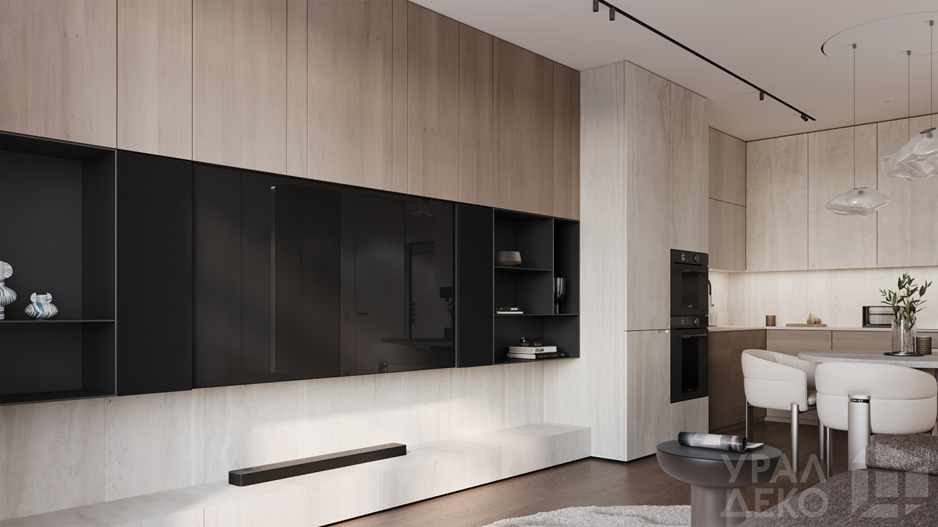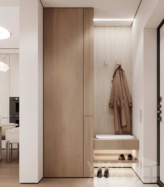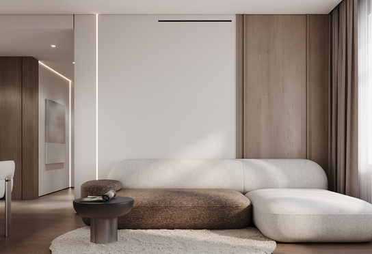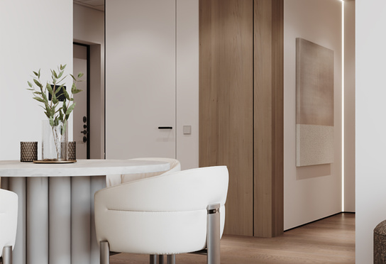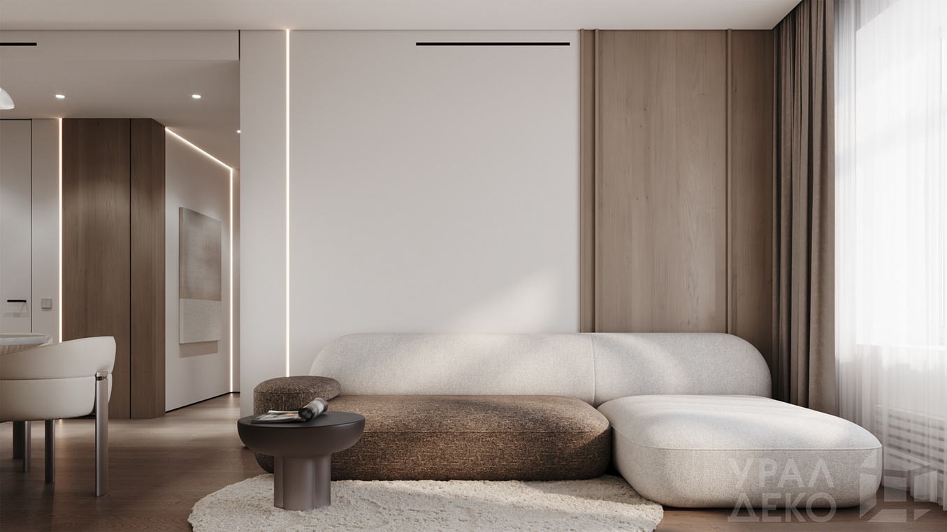 Современный дизайн интерьера квартиры в стиле минимализм — основа этого проекта. Светлые оттенки стен в сочетании с натуральным деревом создают тёплую и гармоничную атмосферу. Заказчики хотели получить функциональное пространство с продуманным зонированием, где каждый квадратный метр используется по максимуму. Лаконичный интерьер с чистыми линиями и формами визуально расширяет комнату и делает её по-настоящему современной.