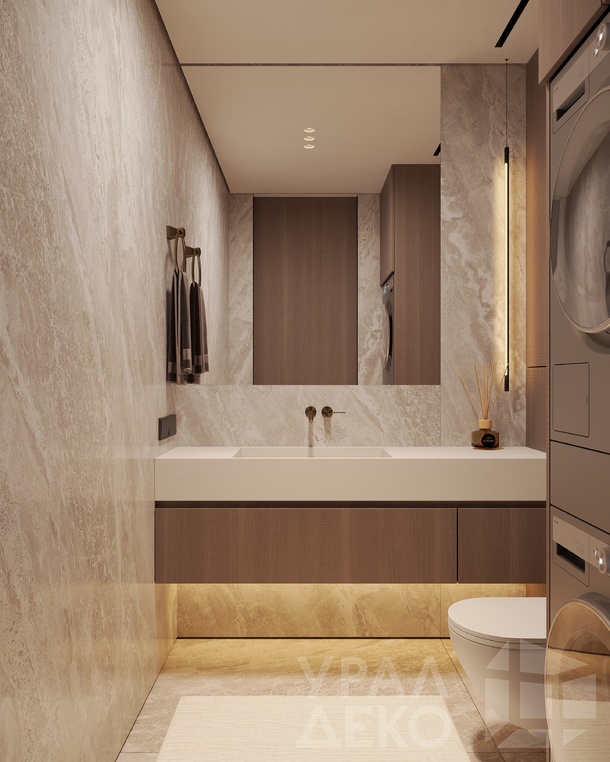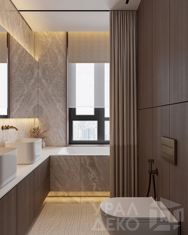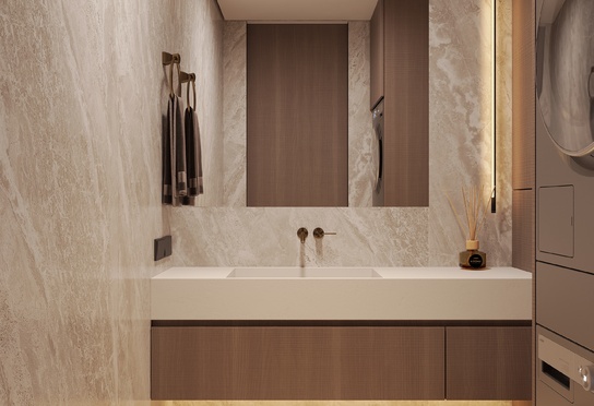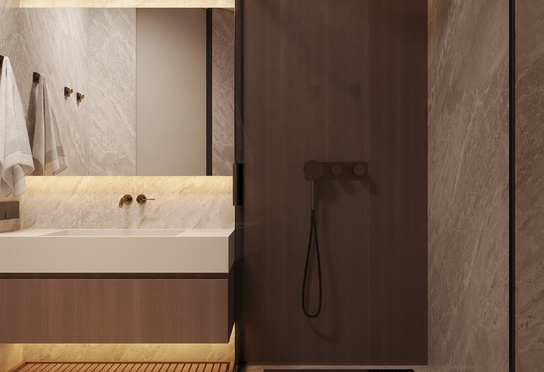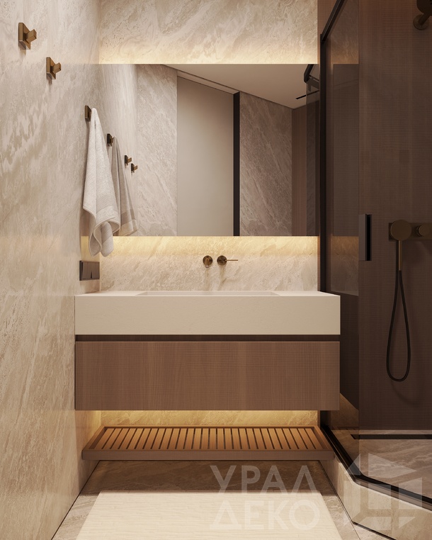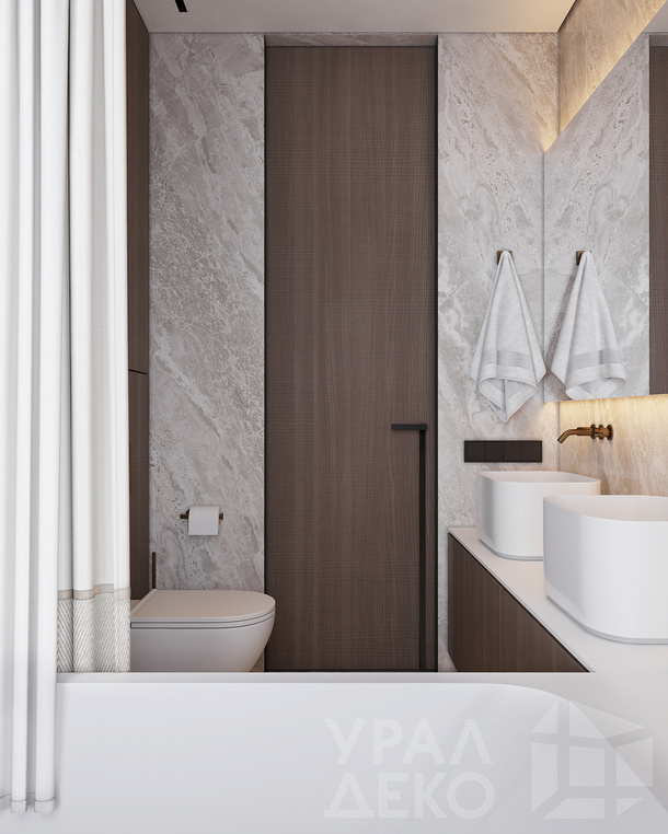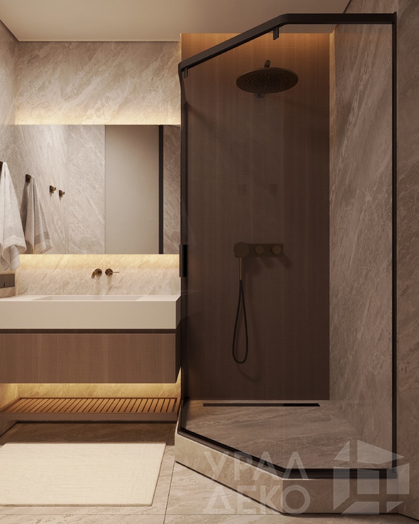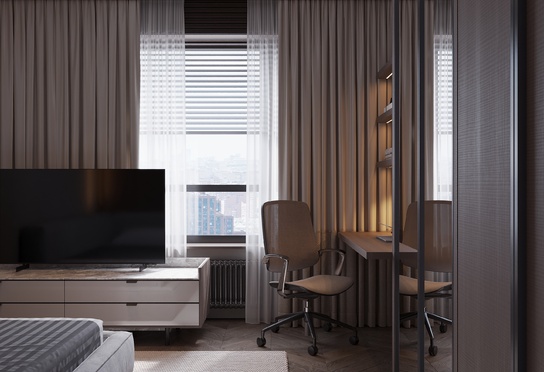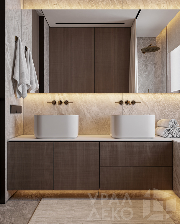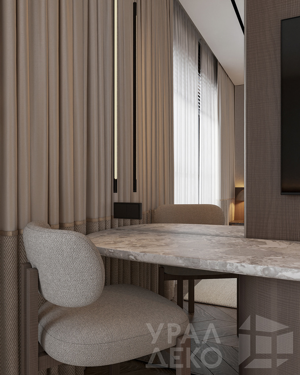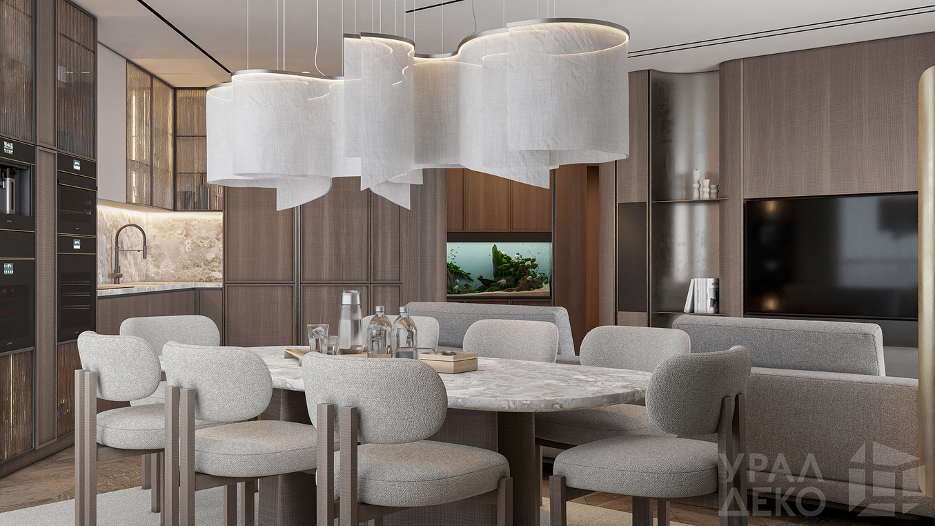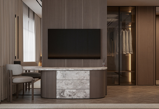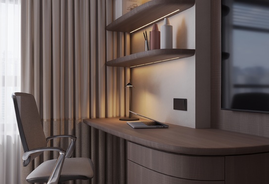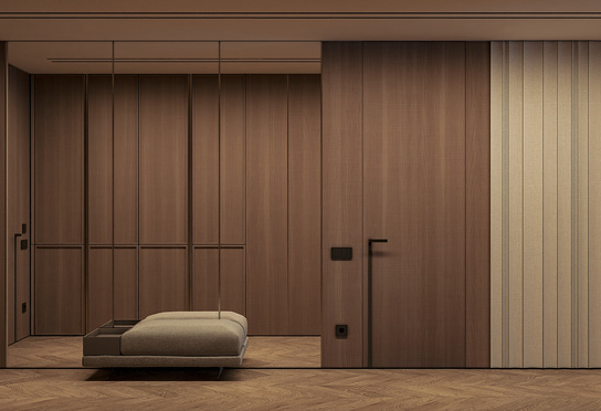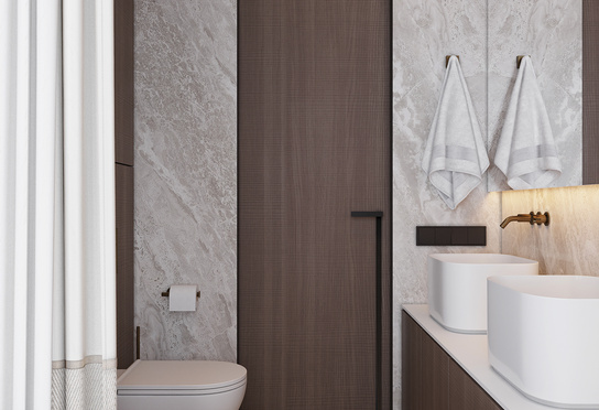 Дизайн интерьера квартиры в тёмных тонах с использованием натурального дерева — именно так выглядит этот проект. Массив дерева задаёт характер каждого пространства: тёплая текстура материала контрастирует с глубокими тёмными оттенками стен и мебели, создавая уютную и выразительную атмосферу. Заказчики хотели современный интерьер без лишних деталей — с чётким зонированием и продуманной функциональностью. В результате получилось пространство, где дерево — не просто отделка, а полноценный архитектурный элемент, подчёркивающий форму и структуру интерьера.