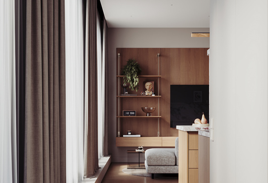 Трёхкомнатная квартира в стиле минимализм — проект, в котором каждое решение работает на пространство. Натуральное дерево в отделке и мебели сочетается со светлыми стенами, придавая интерьеру теплоту без визуальной перегруженности. Перед нами стояла задача: создать жилое пространство с грамотным зонированием, где удобство и эстетика дополняют друг друга. Чистые линии, продуманное освещение и лаконичные формы — всё это делает квартиру современной и комфортной для жизни.