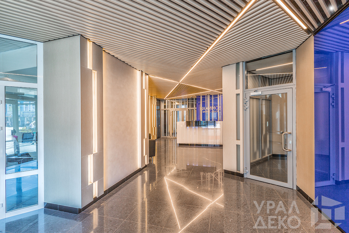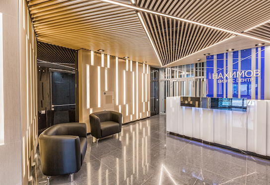 Интерьер бизнес-центра «Нахимов», расположенного в самом сердце Екатеринбурга – это удачное сочетание современных строительных решений и уникальных комплектующих.
